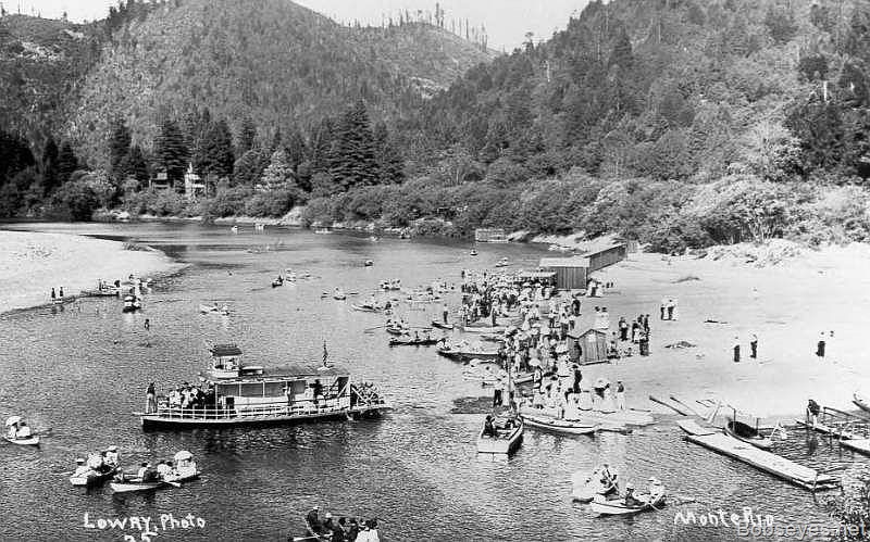 Old photos of the Monte Rio river crossing showing the clear cut forest
