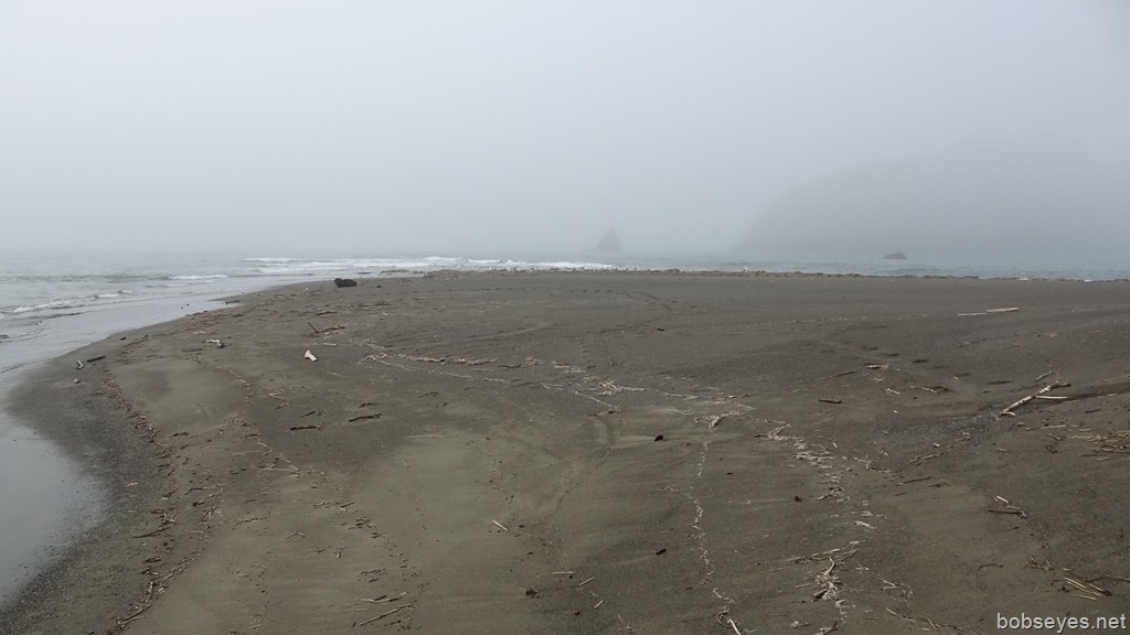 I continued on down the river. I could hear the ocean waves breaking on the beach up ahead in the fog.![]()