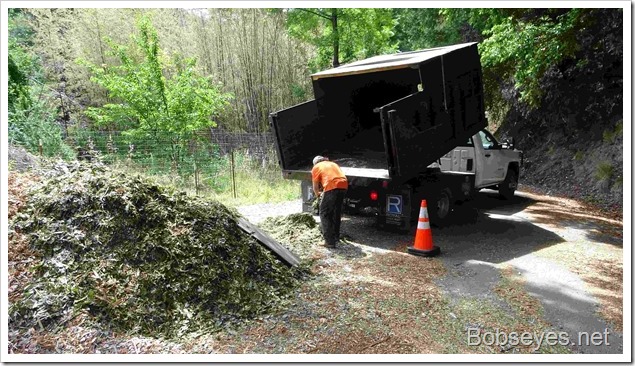 I heard a truck out by my front gate so I went out to take a look and it was the woodchip dumper guys getting ready to dump a load of woodchips.![]()