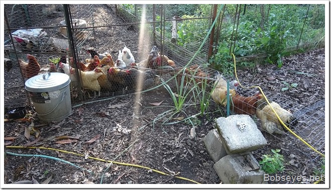 Around 6 I let the chickens out to graze and they are always eager trying to get me to let them out sooner.![]()