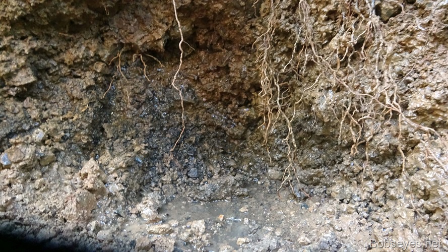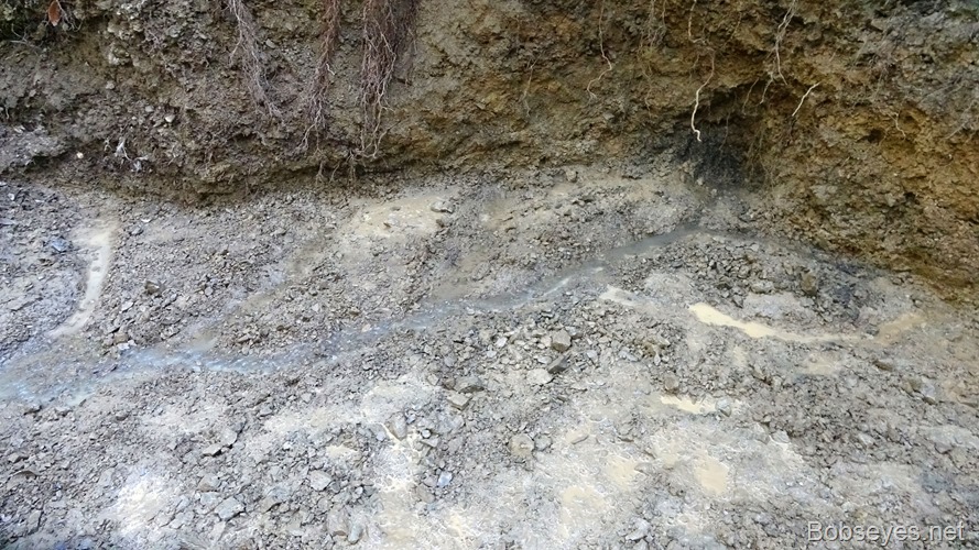 The soil is changing color here showing where the water has been coming out of this hill for years.dirt11