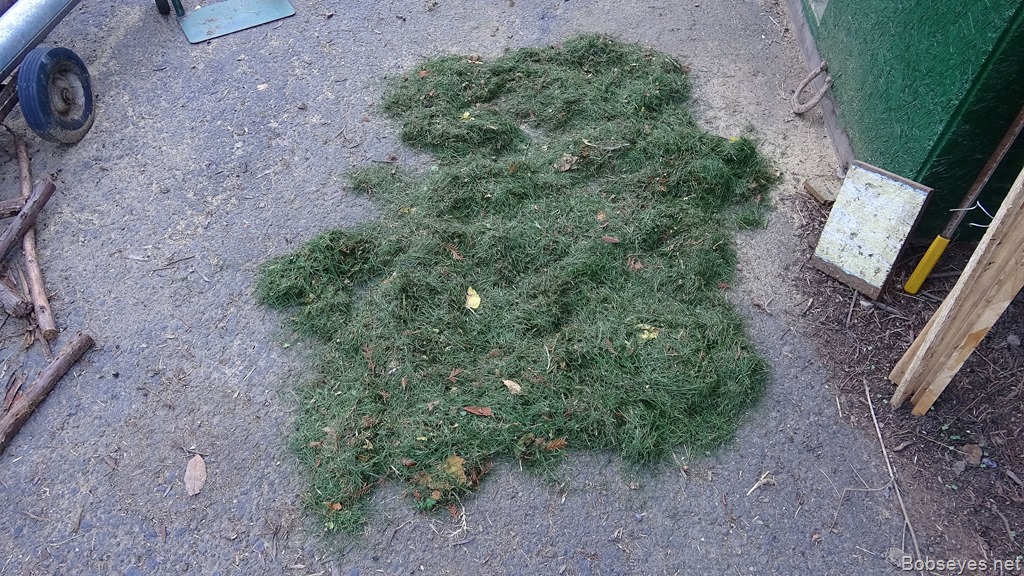 While I’m gone on this trip coming up some of my chickens might start laying eggs so I need something to line their nest boxes with so I started the weed mower and cut my neighbors grass to get this which I dumped out to dry out a bit. I’ll put it in the nest before I leave.![]()