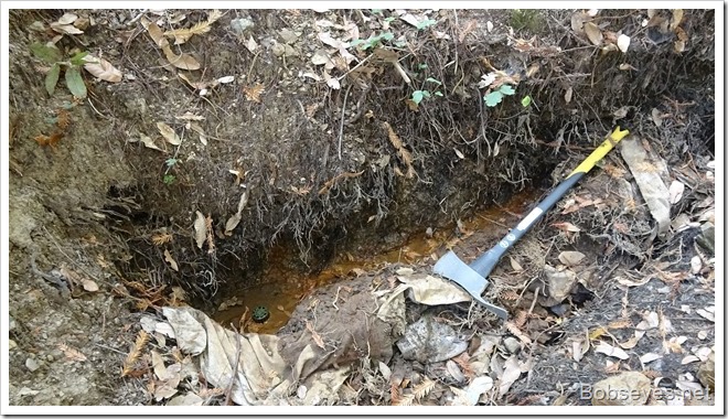 After digging for a few hours I found there where actually three springs coming into this one. Two of them from old holes I’d bored into the ground a long time ago and one coming down the ravine that looked to have the most iron in it so maybe I won’t use that one if the other two are ok.