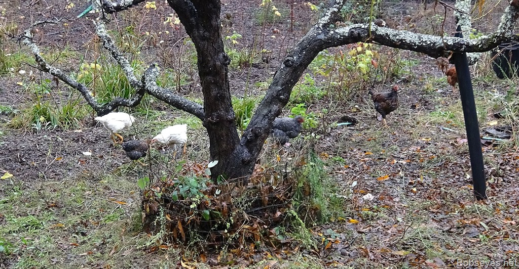 The chickens would like to come through that gate to graze some more places, but instead I fed them some more feed. It’s raining and they should get out of the rain eh.![]()