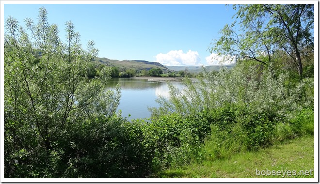 After about an hour and a half of travel we came to the Snake River just outside of Lewiston were we stopped for a short break at a state park along the river. Can you see the birds on the gravel bar?![]()