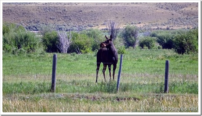 We saw this moose by this fence in a field and it wasn’t leaving as we approached.![]()