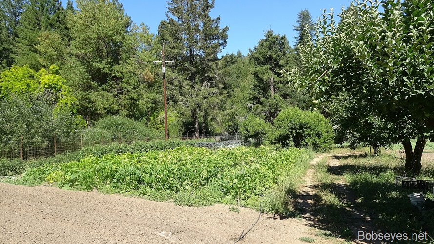 There’s the row of cabbage just up ahead. I think that dark green stuff is kale.![]()