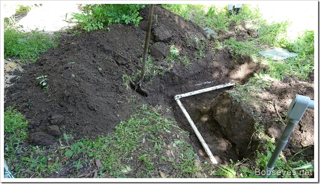 Here’s the hole I dug uncovering the main well water pipe where the valve needs to go.![]()