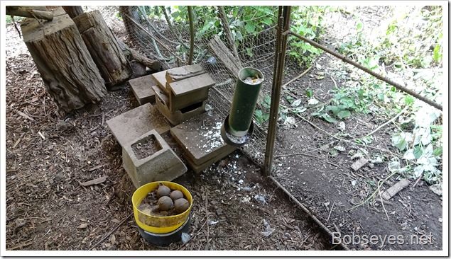 My idea is to leave this feed box door open all night so the rats can get used to eating from it and eventually remove the feed and put some feed in there that is not good for the rats to eat. If that doesn’t work I can also set the door up to close on them or I can maybe pull a string to set it off. I have a cam setup that goes to my computer so I can watch the action as  motion sets off the camera recorder, which is good as I can see what’s working and what isn’t working. box2