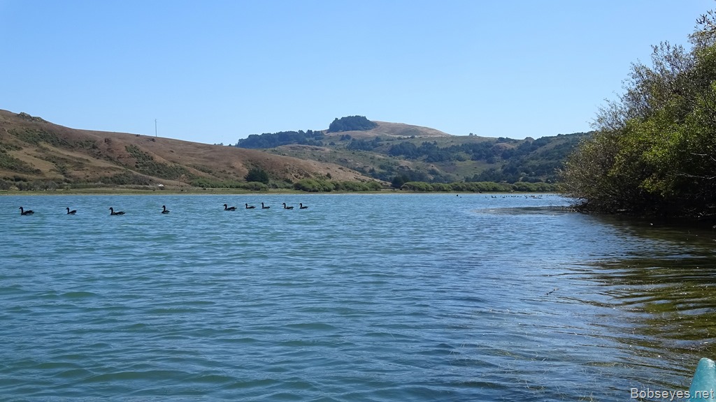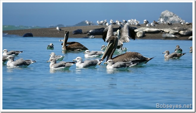 I could see a lot of birds across the river in front of me. Cormorants on the right and white pelicans on the left.![]()
