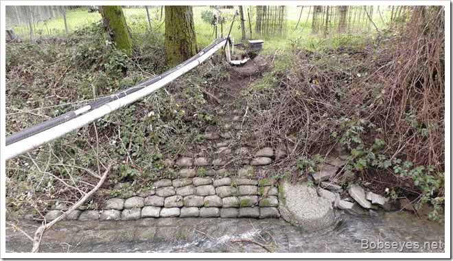 During one of the times it stopped I grabbed a shovel and walked across the road to where I did the pipe creek crossing repair a month or so ago.