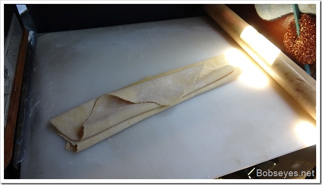 Here’s the dough on my board cut up and ready to work up into noodles.![]()