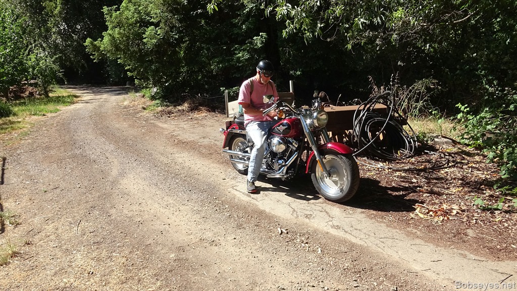 I was sitting around in the yard this morning when my brother Barry pulled in on his Harley Motorcycle. We shot the bull for a bit then he said you want to go for a ride meaning on the dirt bikes. My body was pretty sore so I said sure but stay off the really steep stuff.