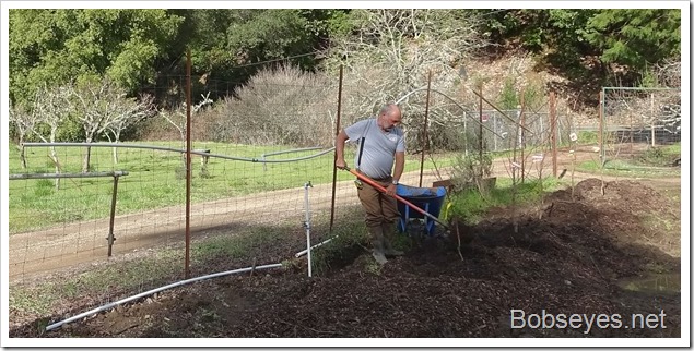 I got back to the mulch and went over to my brother’s where I knew there was some nice redwood mulch and loaded up the wheelbarrow several times.![]()