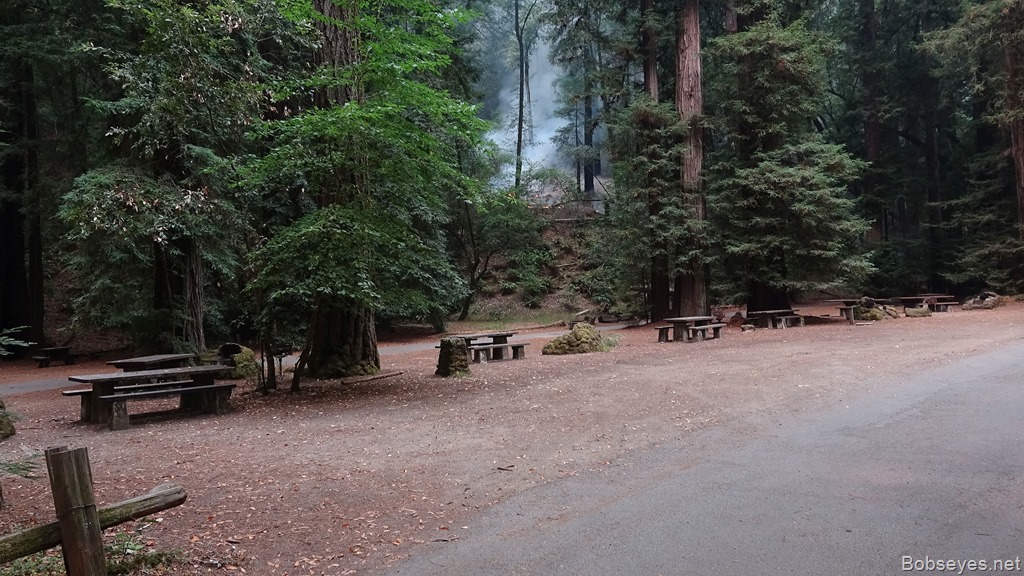 There were CAL Fire guys and state park fire guys all over the place mostly not doing too much except watching the slow burn to make sure it didn’t get up into the big trees. A slow burn is not very destructive and is good for the forest so they watched. I think the park will mostly be all right after the fires gone. It’s a renewal process. It’s hard to see but there are some small fires burning down the hill on the far right which have hit the valley floor where the big trees are.![]()