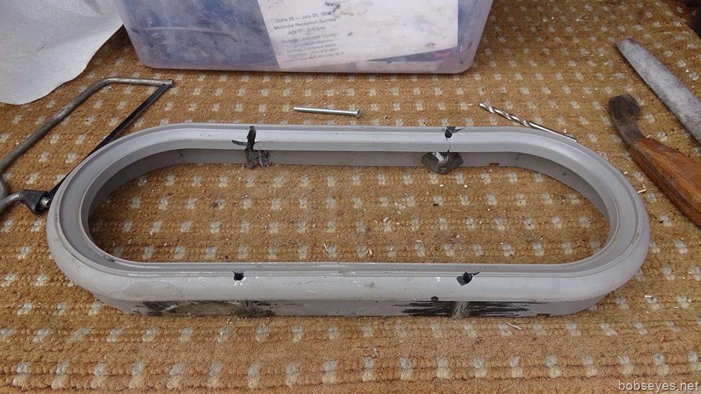 Here I’ve drilled holes all the way through the bezel. One of them I messed up and got off center, but I can fix it up with some more epoxy.