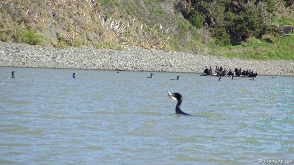 I worked my way out into the river’s open mouth and looked out into the Pacific ocean. There were quite a few cormorants fishing in the water. It was high tide so there wasn’t much current going out into the Pacific ocean.![]()