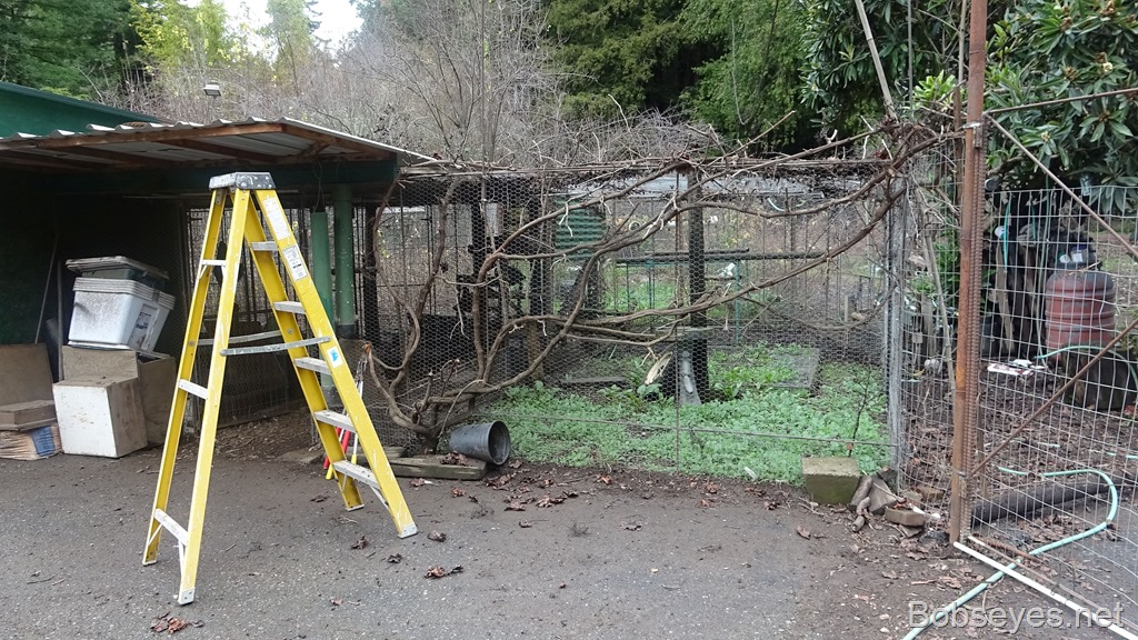 I got my shorter ladder out so I could prune this grapevine on the chicken pen as it’s starting to take over, but at least it has real good grapes to eat.![]()
