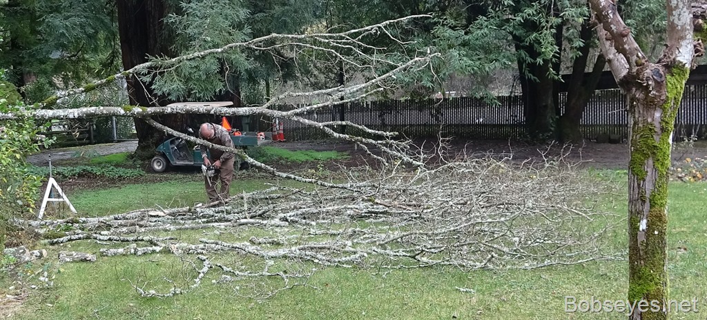 I heard my brother Tom with his chainsaw next door so I went over to see what he was doing. It appears a tree had fallen over and he was cutting it up into firewood.![]()
