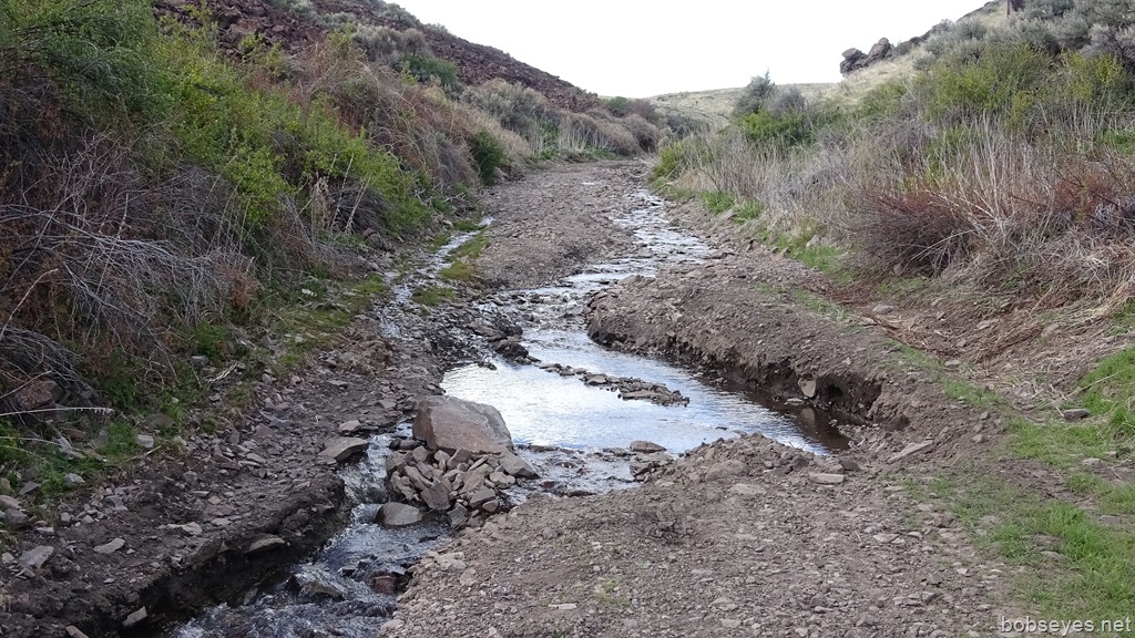 I started down the ravine and didn’t get far when I came to a spot where the creek had jumped into the road and was going on down the road.![]()
